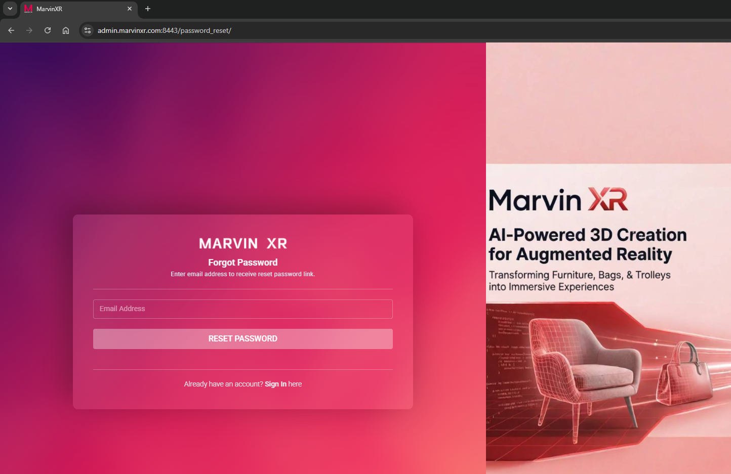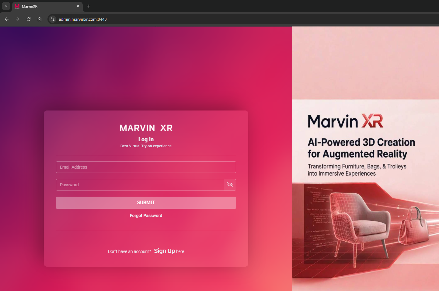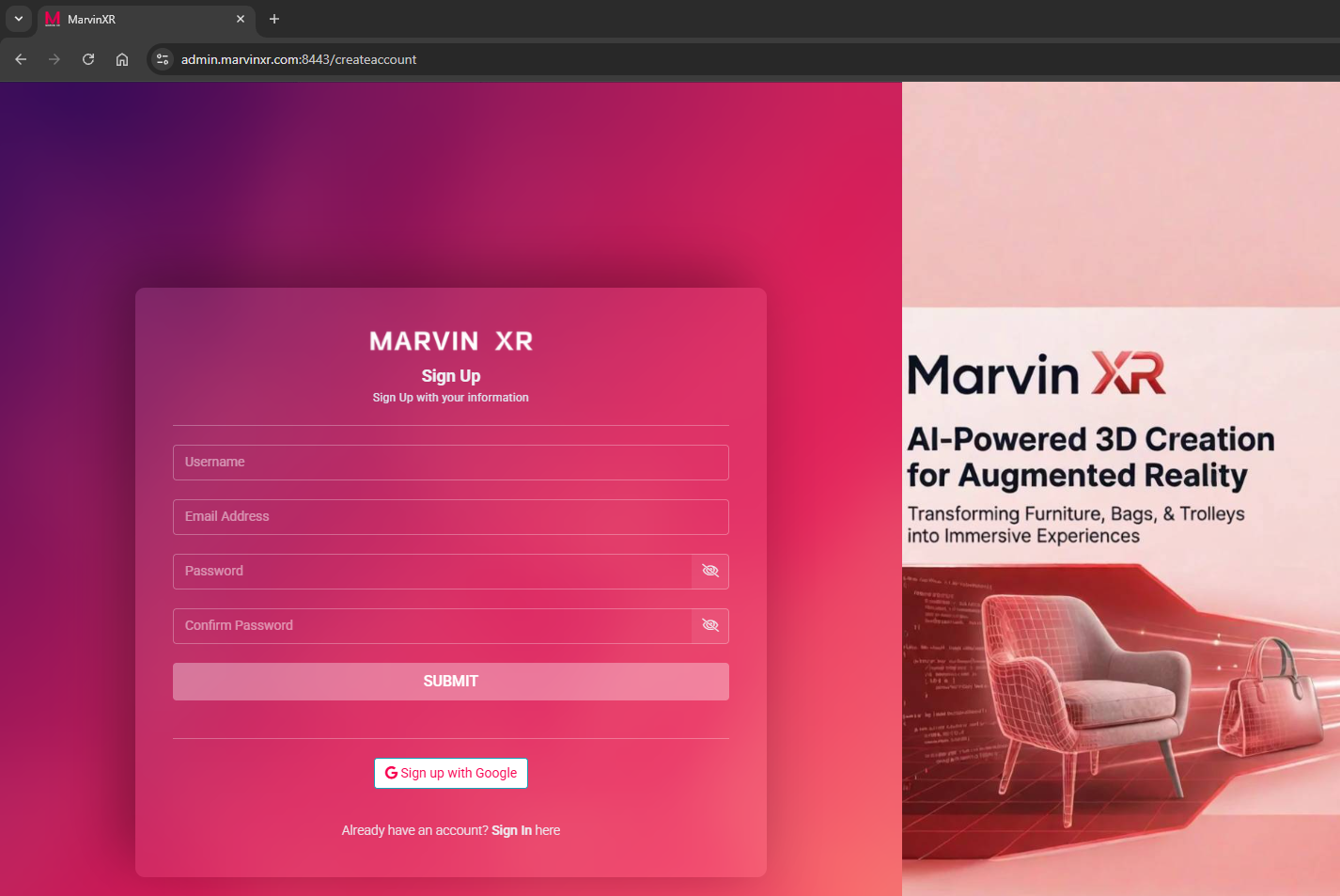 Sign up and create your account in Marvin XR platform. Sign up in the platform here.